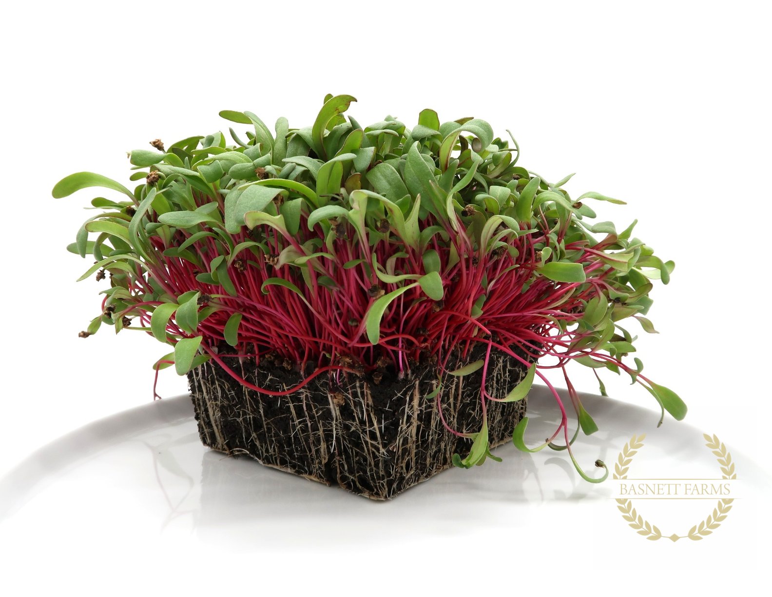 Lofty. Bright green leaves and red stems